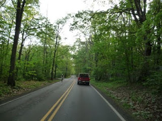 On the other side of the mountain, we began to notice ominous clouds - ominous clouds that seemed to be right over our destination. When we got to the split for PA 26 and PA 305, rather than continue south on PA 26, we opted to take PA 305 west back toward the blue skies and sunshine. As we drove down PA 305, I noticed a large, furry lump on the center line of the road. I mentioned it to Chris and we both thought it was roadkill. Until it wound up being a very much alive groundhog who decided to dart in front of us at the last second. I screamed in my helmet...which, of course, went ride into Chris' ears through our comms. Oops. Stupid groundhog. Right after that, a huge turkey vulture took off right in front of us. What is with the critters?!? OH! And we're pretty sure we hit something (cat, possibly) that neither of us saw, but that we certainly felt hit our boots! We were busy looking at the ominous clouds and then bump, clunk, thud.